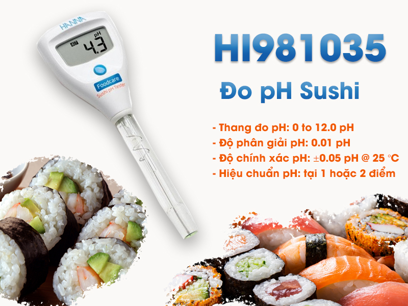 Để có thể biết được nồng độ pH ở trong Sushi để đảm bảo an toàn thực phẩm và tươi ngon cho các khách hàng, bạn cần biết tới thiết bị máy đo pH HI981036. Máy này sở hữu kiểu dáng rất nhỏ gọn cùng với màn hình lớn giúp bạn có thể thuận tiện trong việc quan sát cũng như mang đi dễ dàng. Máy đi cùng với điện cực, sử dụng dễ dàng và kết quả chính xác.