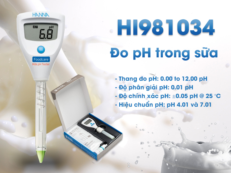 Để có thể đảm bảo được sữa sản xuất an toàn, đạt tiêu chuẩn đáp ứng được sức khỏe của người dùng, bạn cần phải dùng máy đo, bút đo pH HI981034 trong sữa. Máy này thiết kế kiểu dáng nhỏ, cho kết quả đo chính xác cao và đi kèm với đó là có cả gói điện cực.