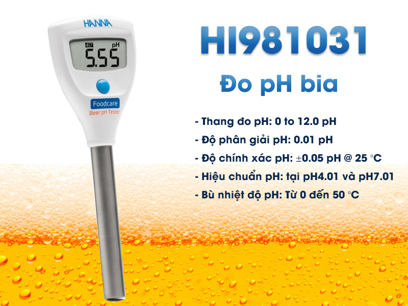 Nếu bạn đang muốn đo nồng độ pH trong bia thì các bạn có thể cân nhắc sử dụng bút đo độ pH HI981031. Máy này thiết kế có kiểu dáng rất nhỏ gọn, cầm đi dễ dàng và rất dễ sử dụng.